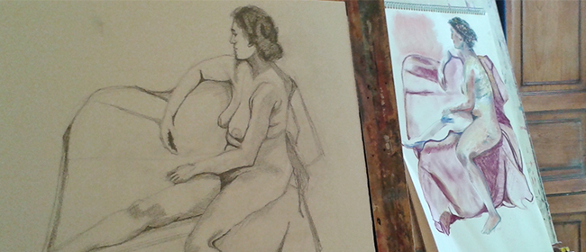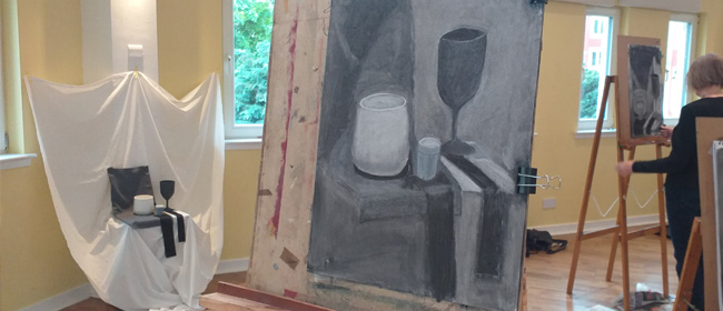 All my classes have a mixture of exciting subjects including: Life, Draped life, Dancer, Portraiture, Still life, Colour, Architecture and Technical Methods. Some morning classes take place on location in Edinburgh. I am excited to be offering some new weekend and day courses held where I work, at Coburg artists studios.